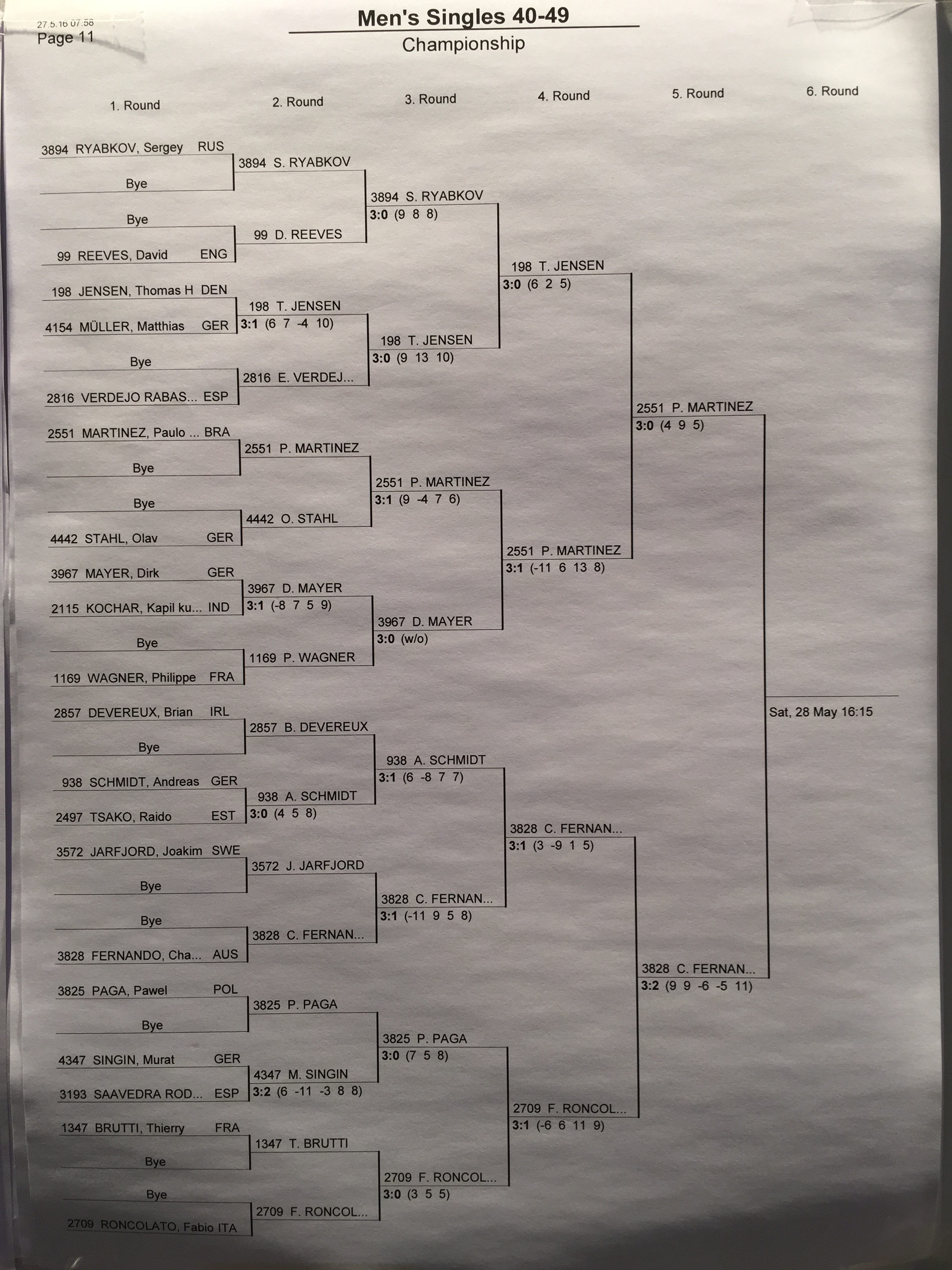 Chamara had a fantasic tournament making the Quarter Final in Over 40 Men's Singles. This event alone had an incredible 668 players that included quite a few current professional players and many former professional players. This event started with 167 Groups of 4 players where Chamara won all 3 matches in his Group. He then moved onto a knockout stage where he won another 3 matches to make the Last 32. He then had a 3-0 win against a player from Brazil then had a great win in Last 16 against someone from Czech Republic before losing 3-0 to someone from Sweden in Quarter Final.